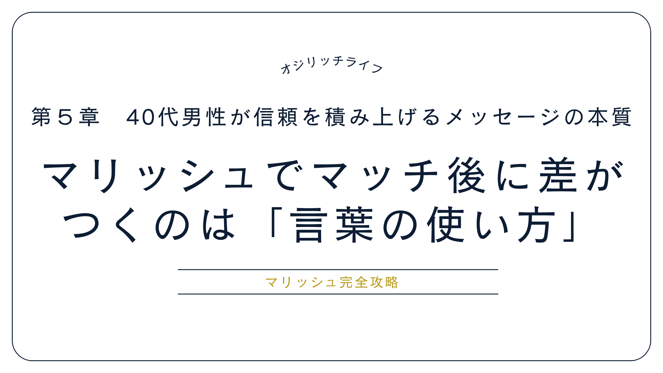 そんな経験から「中年男性が孤立せず、カッコよくリッチに(心を豊かに)人生を楽しむヒントを発信したい」と思い、このブログを始めました。